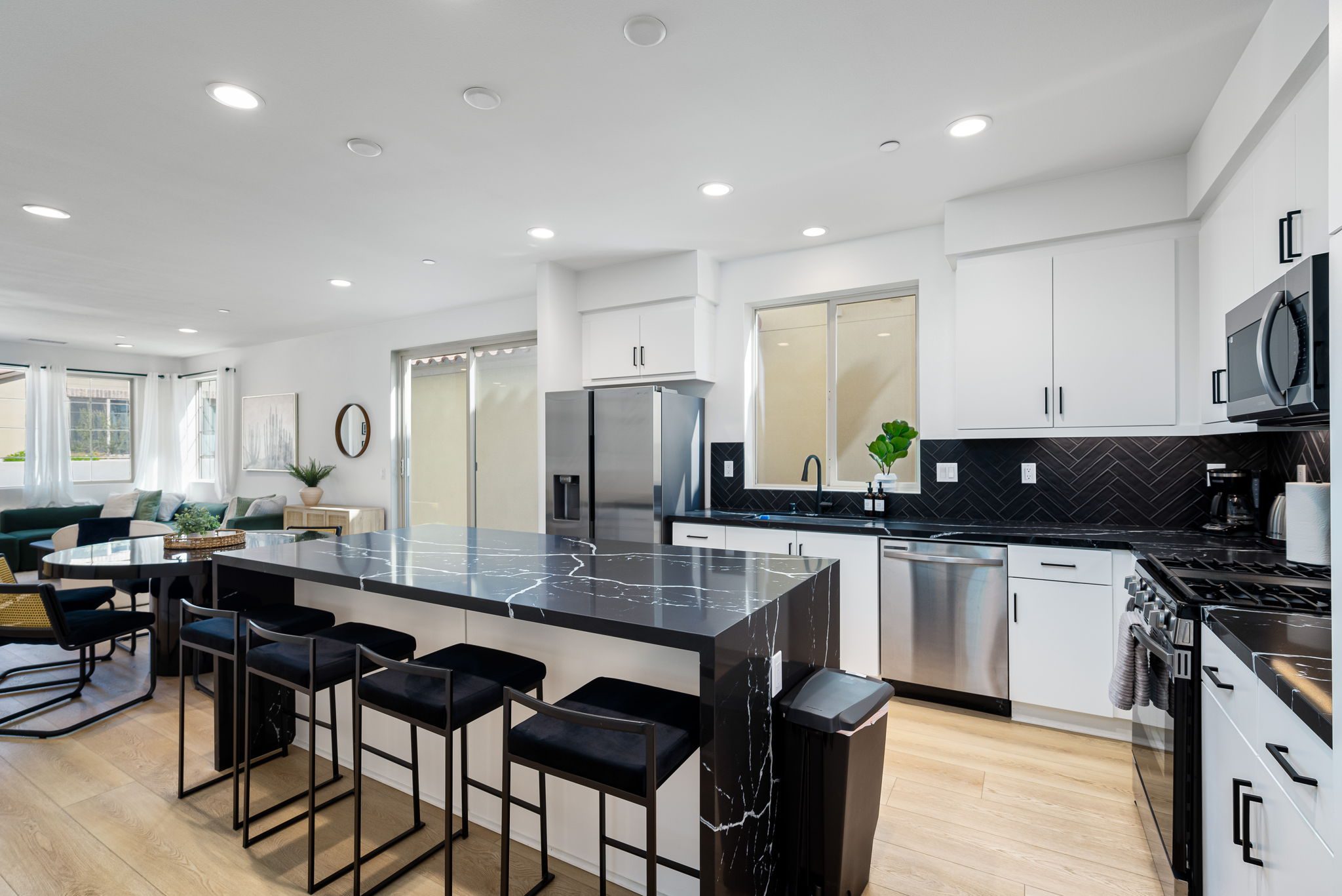- Fully equipped kitchen with stove, oven, fridge, microwave, and dishwasher